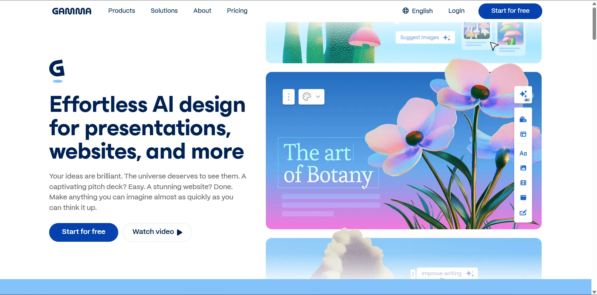 Generate stunning presentations and webpages using simple text prompts.